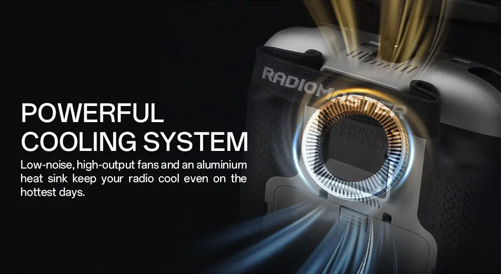 Powerful Efficient Cooling System: Low noise, high output fans and an aluminium heat sink keeps your radio cool even on the hottest days.